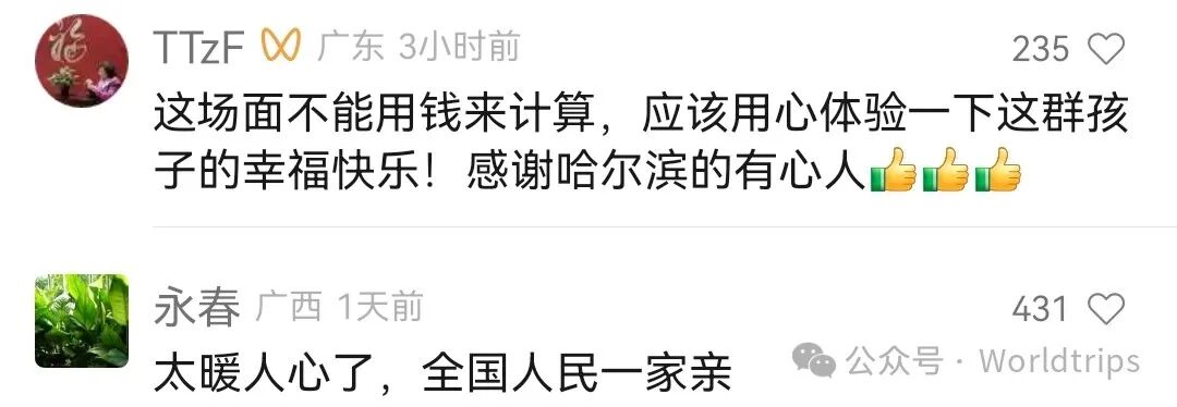 在这场跨越千里的雪中情里,我们看到了人性的光辉。每一个微小的善举,都能点亮他人的世界。让我们为哈尔滨文旅局的这份大爱点赞,也为广州特殊学校的孩子们的坚韧和乐观喝彩!愿这个世界充满更多的关爱与温暖,愿每一个纯真的梦想都能得到守护和实现。