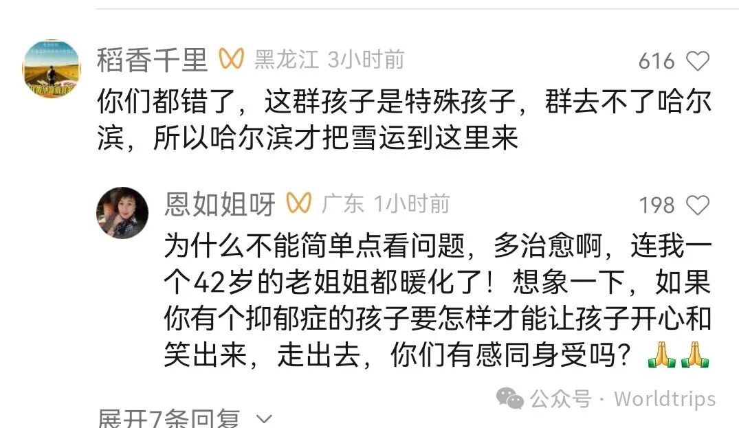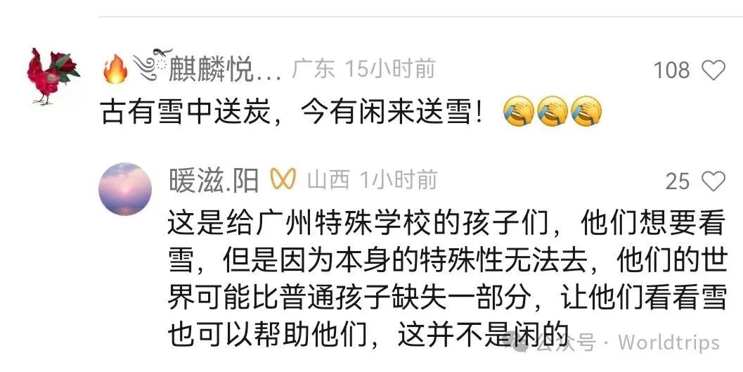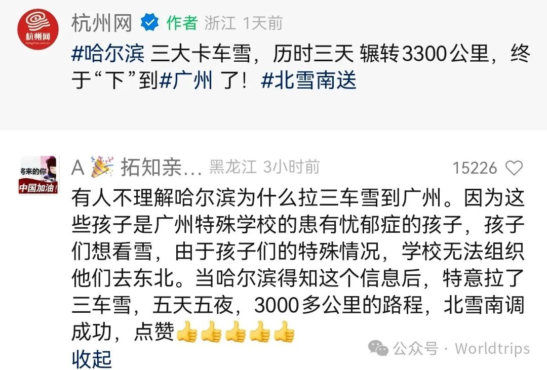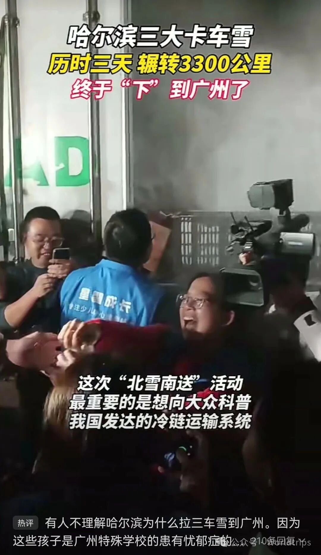 很多网友不理解,千里迢迢送几车雪,不是浪费资源吗?看完评论区瞬间泪目