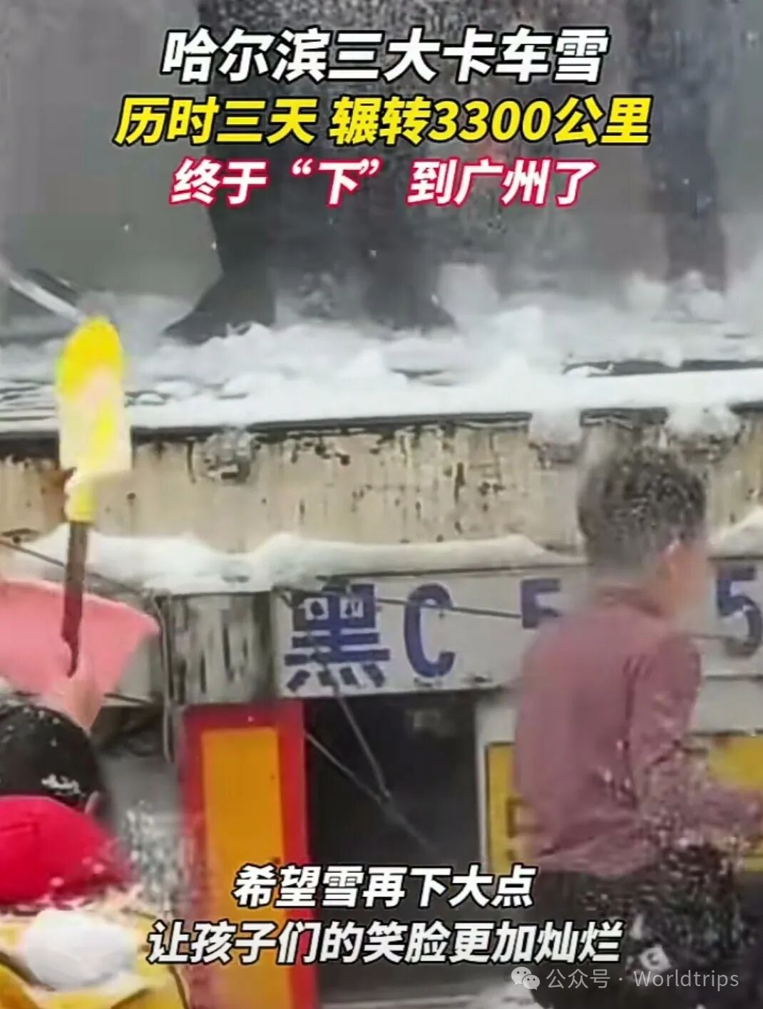 哈尔滨文旅局得知这一情况后,决定伸出援手。他们精心策划,组织人力物力,确保这批宝贵的“货物”能够安全、完整地运送到广州。经过几天几夜的奔波,3卡车的雪终于抵达目的地。
