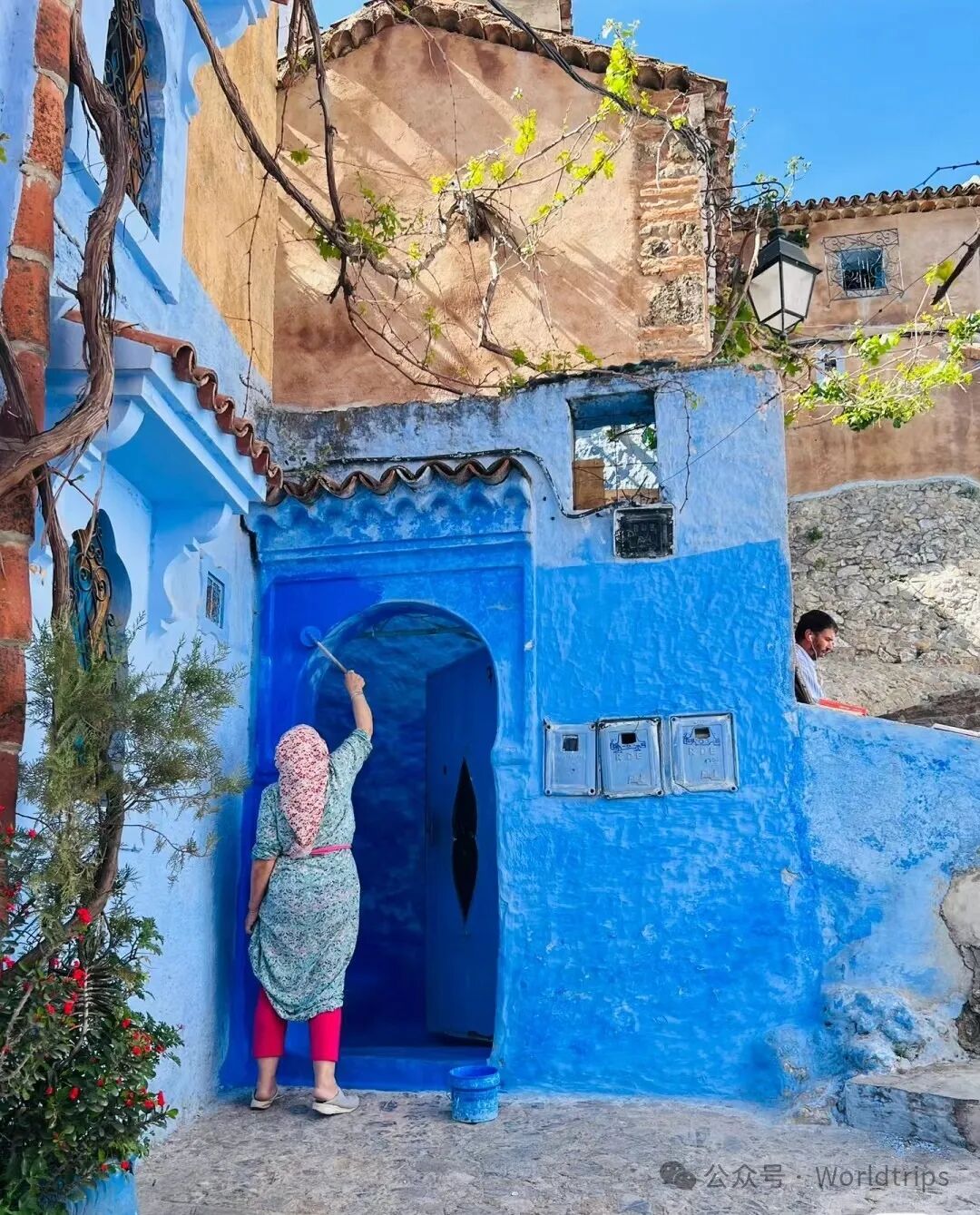 舍夫沙万坐落在摩洛哥北部 Rif 山脉中,整个小镇仿佛被梦幻般的蓝色所覆盖,小巷、房屋、门廊甚至是阶梯都涂成了不同程度的蓝色,给人心灵带来宁静和平静的感觉。