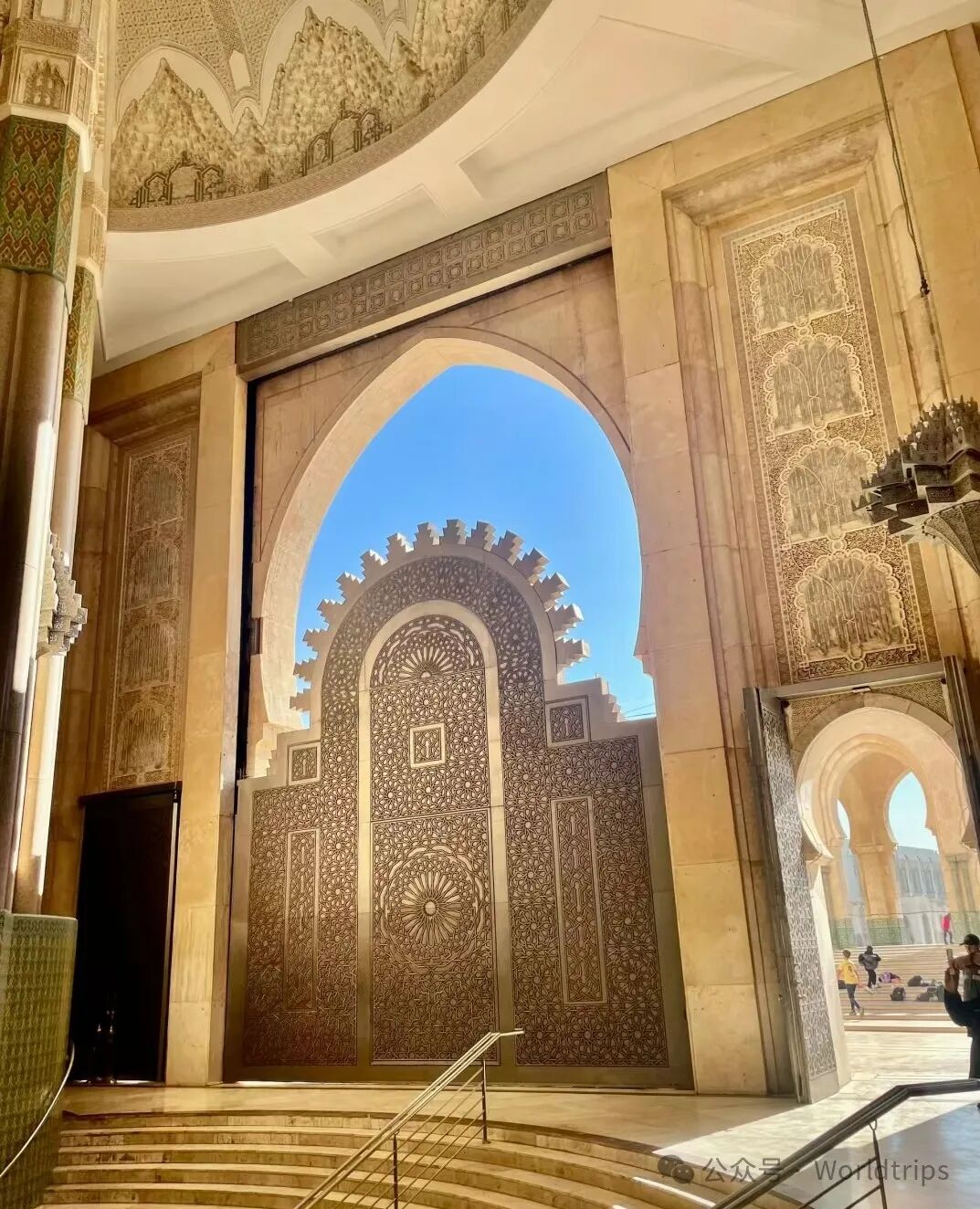 作为摩洛哥最大的城卡市及经济中心,卡萨布兰卡以其标志性的白色建筑而闻名,特别是哈桑二世清真寺,这座世界上最高的宗教建筑之一矗立在大西洋岸边,增添了无尽的浪漫气息。