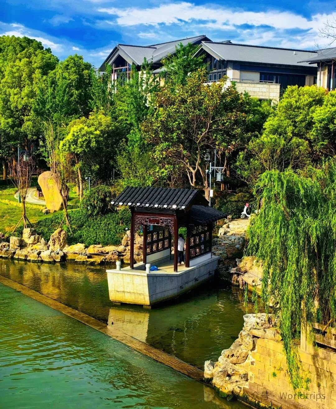 午后,古运河边的垂柳依依,游船悠然穿梭其间,仿佛时间都在这里慢下了脚步,令人顿生远离尘嚣、心归自然之感。