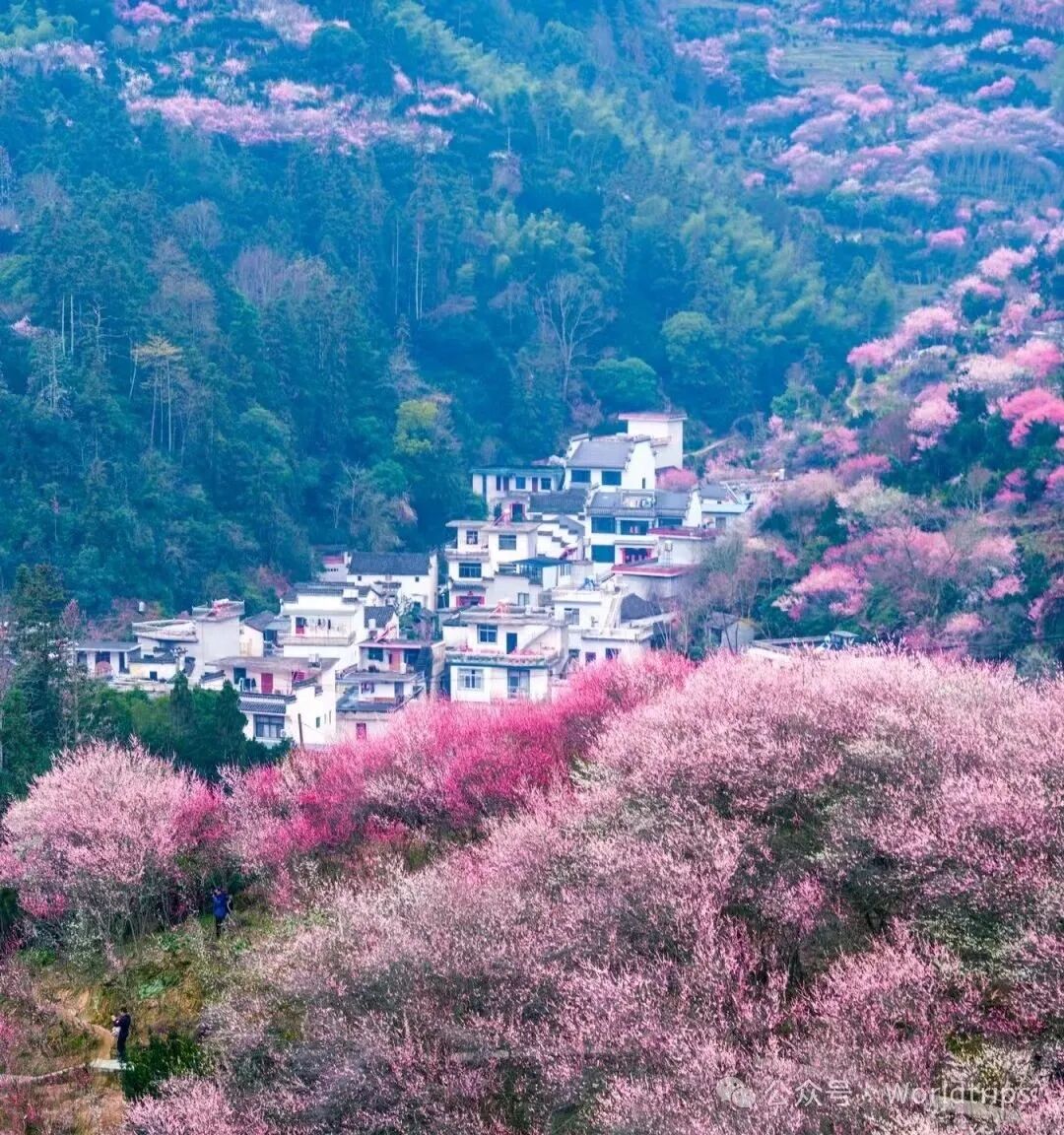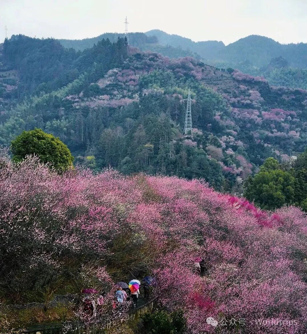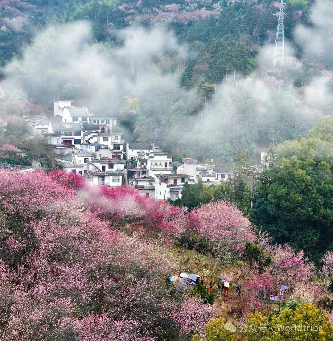 每年二月下旬,当城市还在冬日的余寒中沉睡,这里的梅花便已傲然绽放,粉色花瓣如云霞般弥漫山谷,将整个村庄装点得如梦似幻。