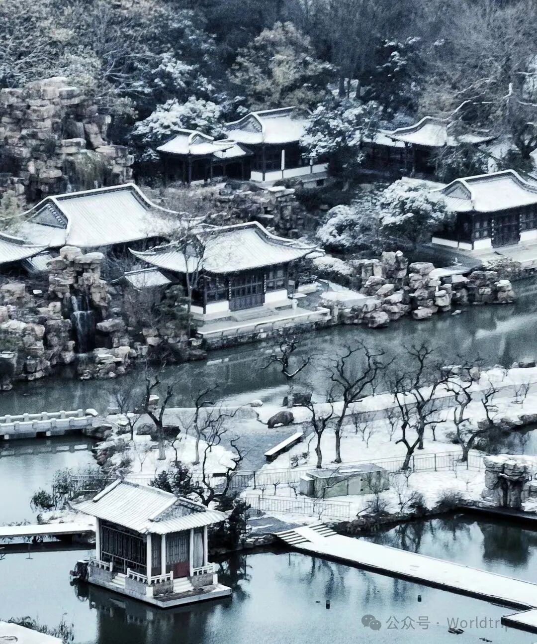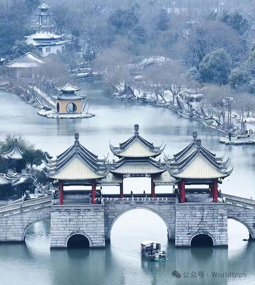 在雪后的扬州,银装素裹,宛如一幅水墨画。