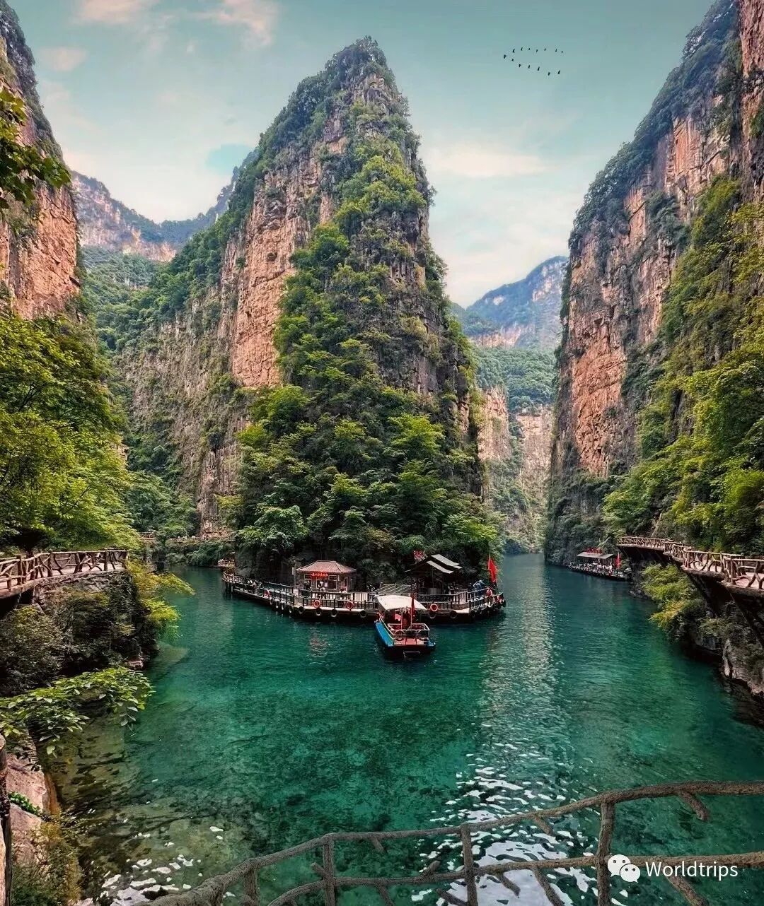 紧接着,你会坐船进入高峡平湖。这片湖泊宛如上帝遗落在人间的绿宝石,清澈见底,波光粼粼。在这里,你可以尽情地欣赏到周围山峦的倒影,感受到大自然的宁静与美好。