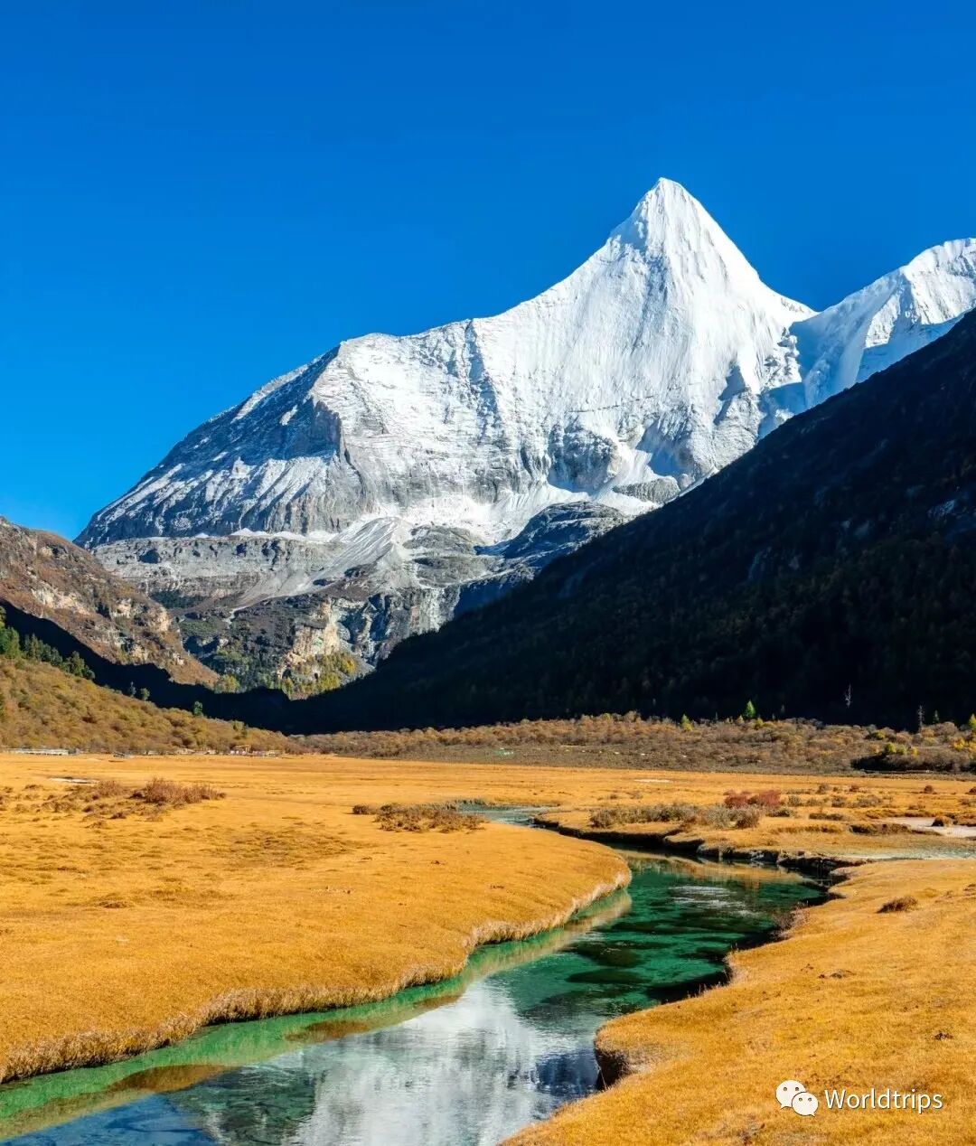 14. 四川稻城亚丁:蓝色星球上的最后一片净土稻城亚丁的美,是那种原始的美。这里的雪山、湖泊、草原和寺庙都让人流连忘返,仿佛找到了人间最后的净土。