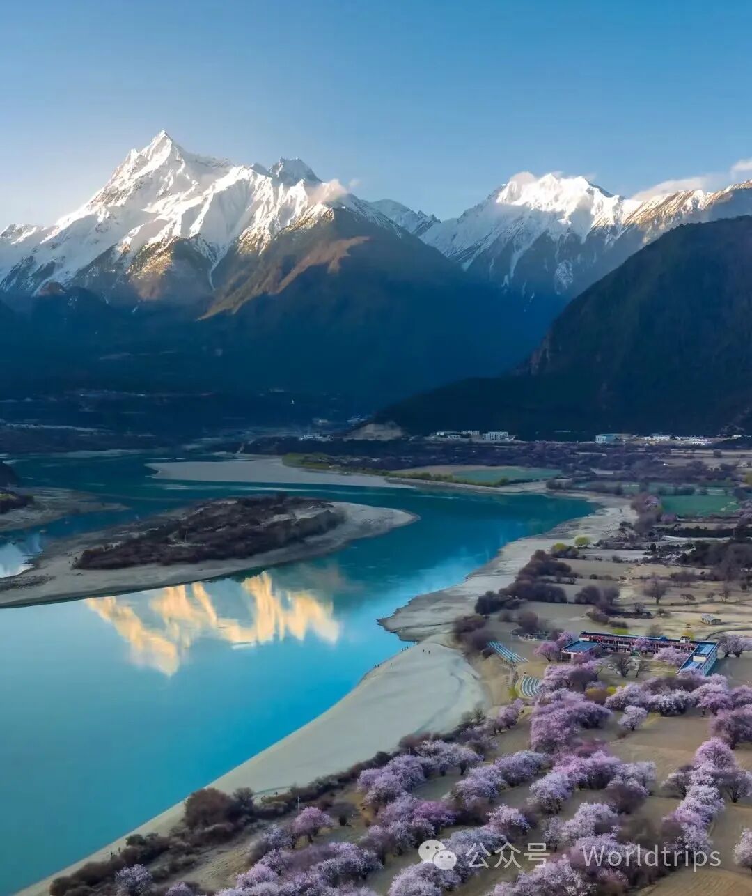 西藏林芝,高原上的世外桃源。每年三月,这里千树万树桃花开,形成了一片壮丽的桃花海。蓝天白云下,雪山冰川映衬着粉色的桃花,如此纯净而又热烈的美景,定会让你心生震撼,感叹大自然的神奇魅力。