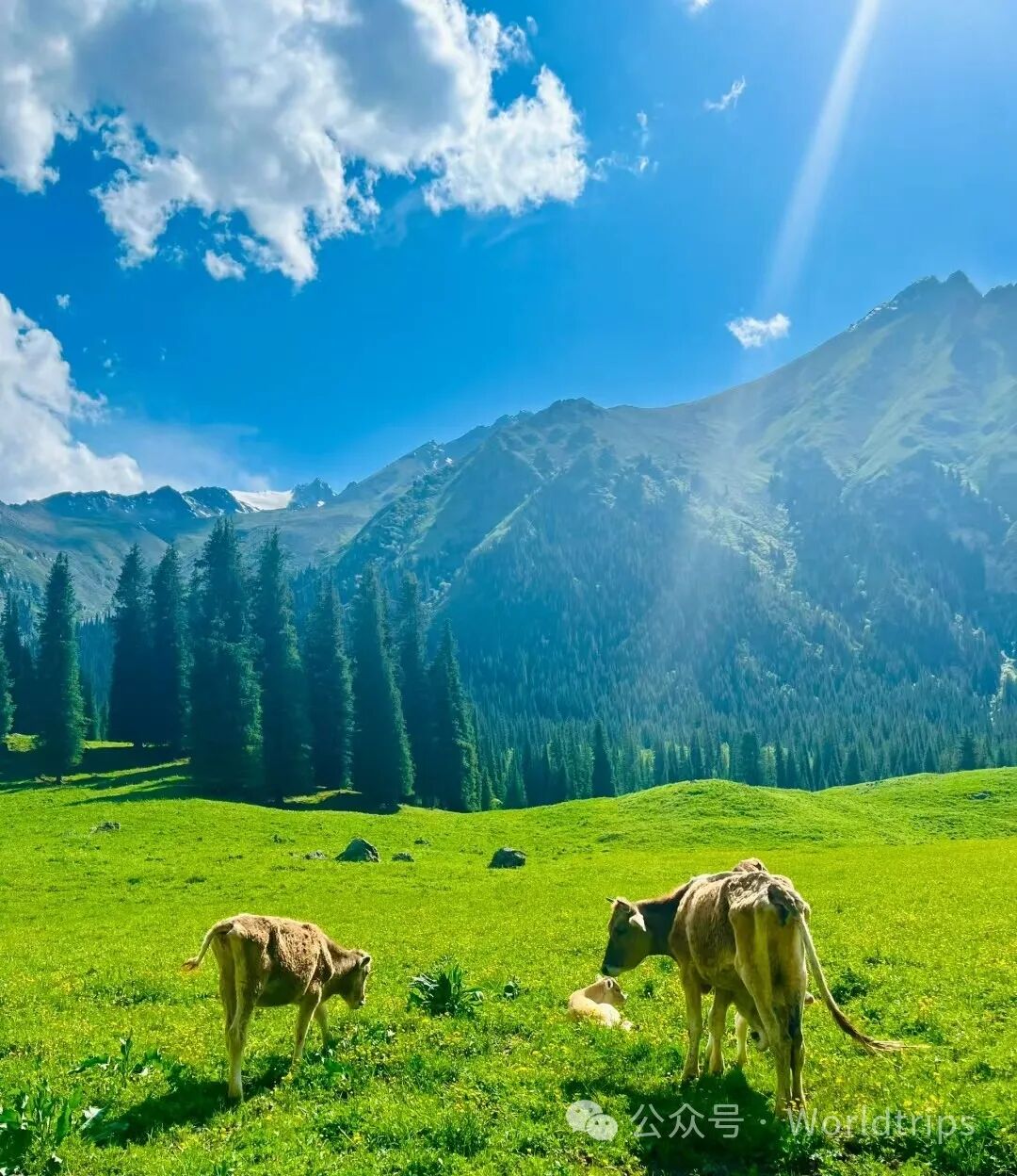 新疆伊犁大草原,金秋送爽,天高云淡。辽阔的草原上牧歌悠扬,牛羊满眼,你可以策马奔腾,释放内心的压抑,享受大自然赋予的自由与宽广。