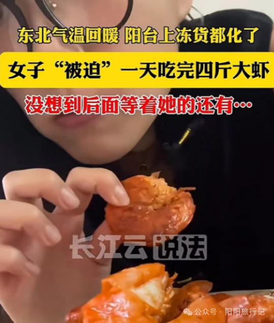 一位名叫小雪的东北女子在网络上分享了她家在过年期间的困境。视频中,她满脸无奈地展示着满满的冻货,包括各式海鲜和肉类,然后告诉大家这些食物需要在一天内全部吃掉,因为气温升高,天然冰箱已经失效了。