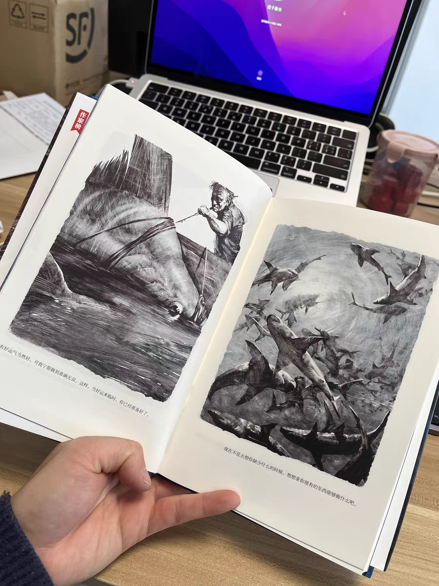 因为其实细看书的内容会发现,其中穿插了大量的老人独白和直接叙事,通常是当一次怀疑的消极想法后,他会继续往积极的方面去想,然后继续想办法。
