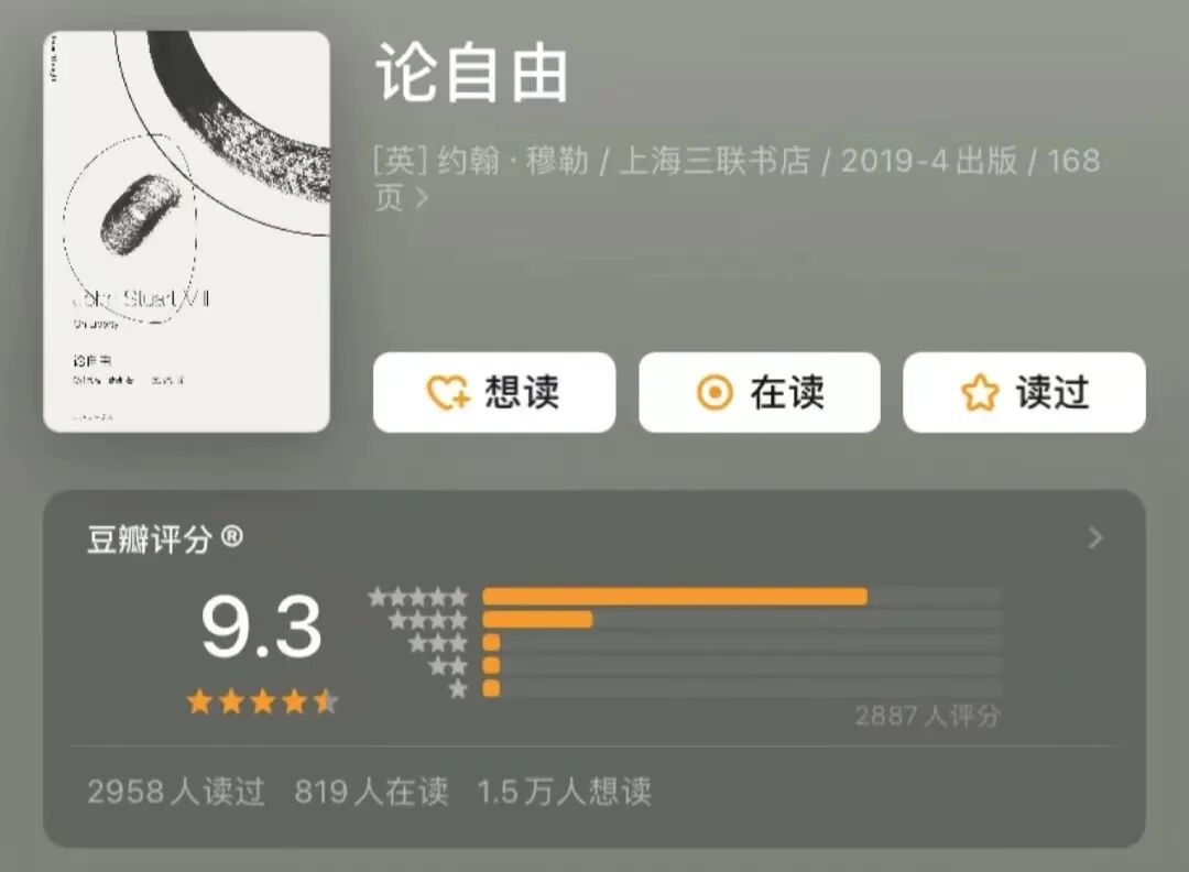 《论自由》,作者约翰·穆勒。这本书的冷门,在于看过的人很少(书名劝退),而且很少看完(不喜欢社会学、政治经济学和逻辑学这类人文社科的朋友会觉得枯燥);但这本书的神奇,在于把人们从无关的牵绊和诱惑之中解放出来,从而释放最大的力量。