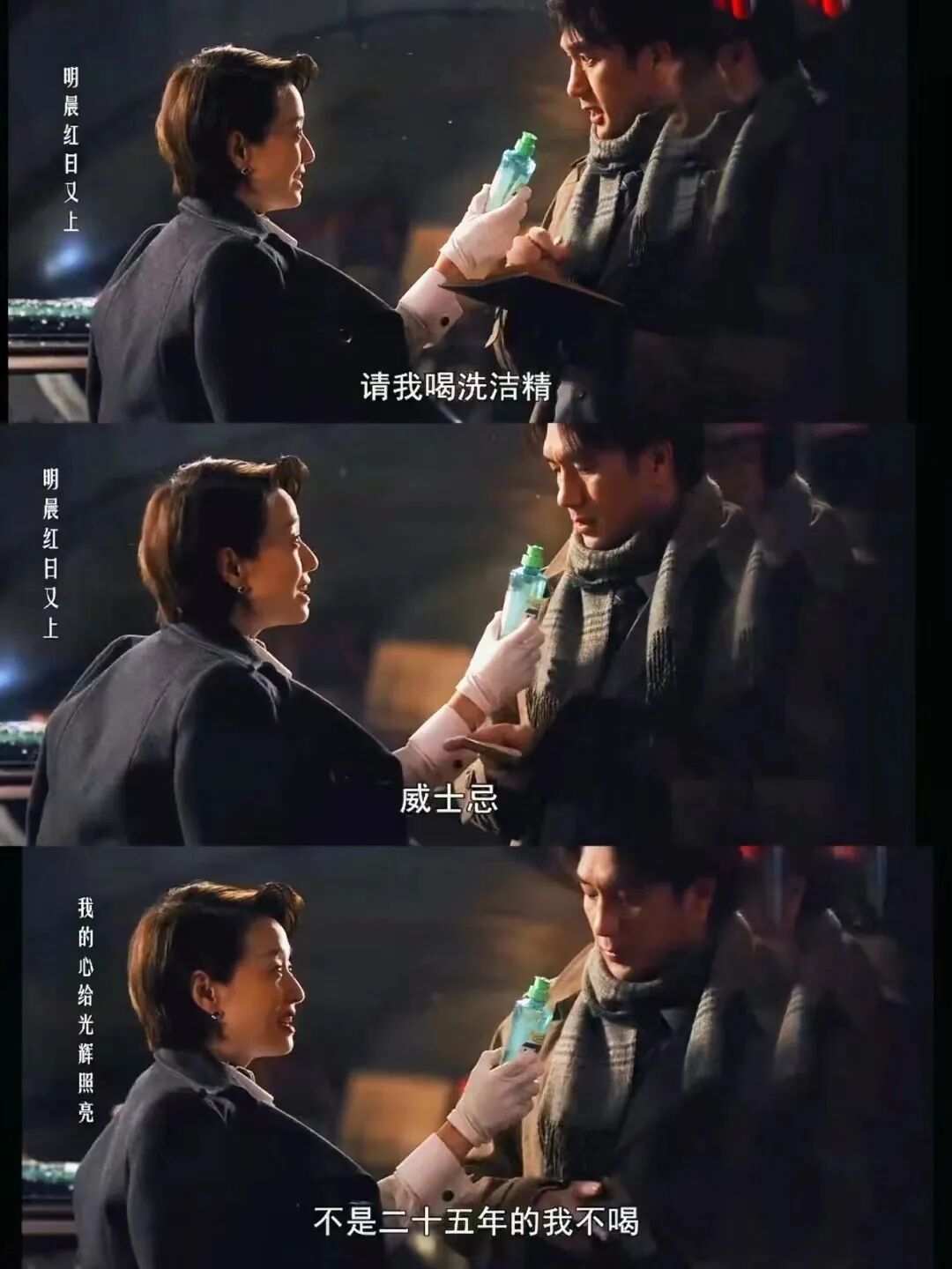 当时的玲子还是酒吧服务员,她会偷偷的把威士忌装进洗洁精瓶子,拿出来和强慕杰一起喝。