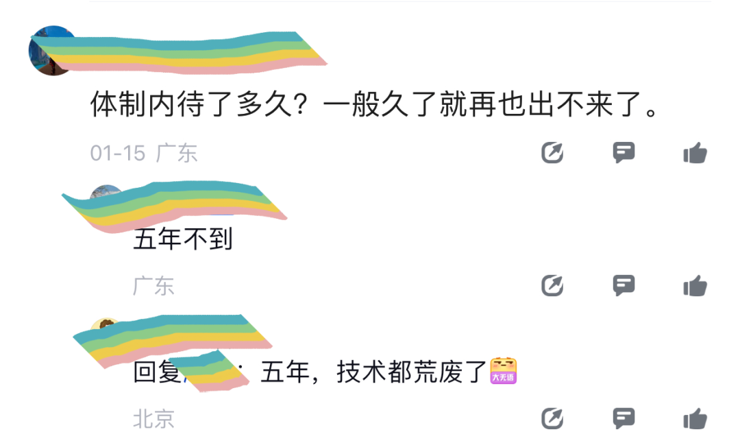 也有网友询问了在体制内待了多久,表示体制内待五年,技术都荒废了。