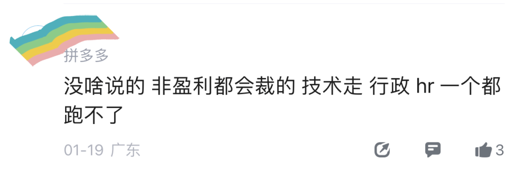 虽然有先后之分,但跳出先后,都逃不开被裁的圈,如这网友所言:没啥说的,非盈利都会裁的,技术走,行政、hr一个都跑不了。