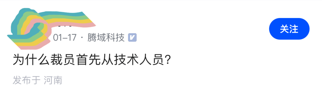 但也有很多人表示,裁员可能也没有那么多先后之分,可能我们本身技术出身对技术部门裁员比较关注,其他部门也是裁员的重灾区。