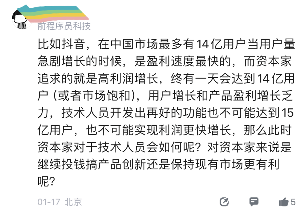 网友还举了个例子:比如短视频,用户量急剧增长的时候,是盈利速度最快的,而资本家追求的就是高利润增长。