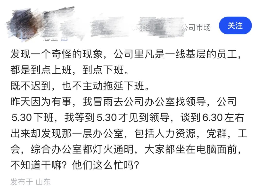 终于等到了目光如炬的明白人,这网友一针见血:因为你耽误了领导下班,外边的人看领导没走,才不好先走。
