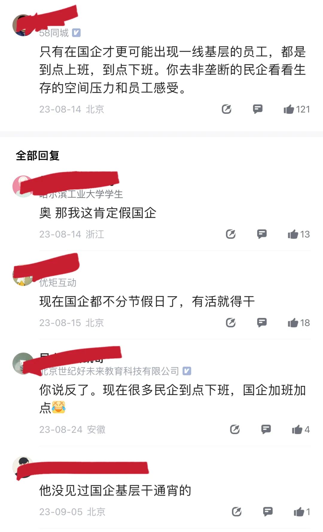 首先,一位经验丰富的私企老大哥就在网上发表了看法:这种按时上下班的情景,只可能在国企见到。我们民企的员工可是压力山大,尤其是那些非垄断性质的民企。这番话似乎有着深层含义,引发了热烈讨论。