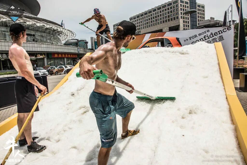 “我们(团队)所有人都要做很多不同的事:准备方案、做PPT、写合同、去看场地、作设计,设计(出炉),客户洽谈,然后到施工;如果需要压雪车推雪也是我开,需要挖土机挖土,也是我来。如果有的地方需要手工铲土,都是我们(亲自)做,我个人也做。”