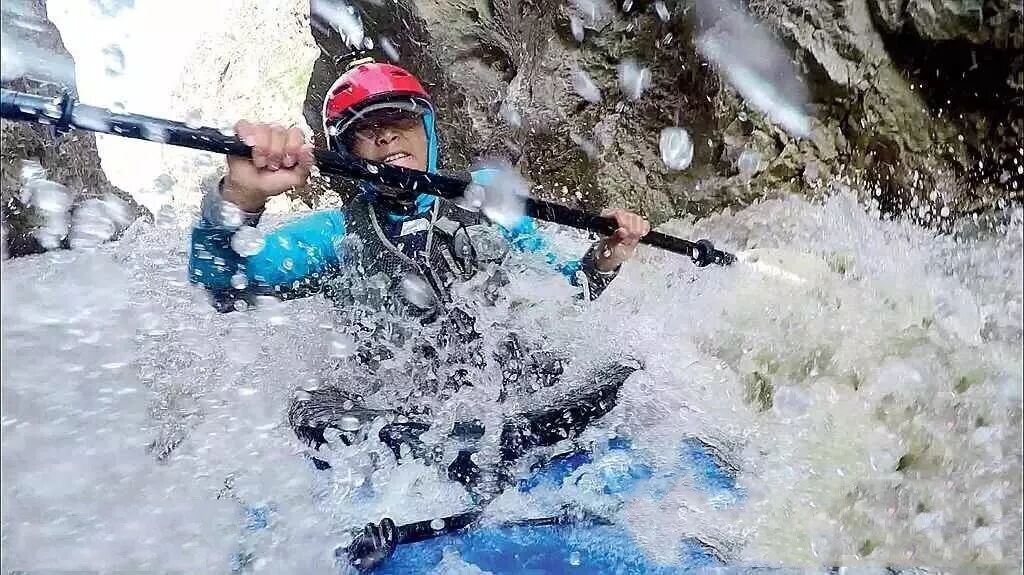 “我漂到了前辈们遇难的地方,说不害怕是假的,但是没办法,我只能堵水,硬着头皮蛮漂。”堵水和蛮漂在漂流中都是大忌,与赌博无异,惟一的赌注就是生命。逼仄的峡谷接连滚起一个个猛浪,像一面水墙击打着独木舟,小艇被水打起又跌下,循环往复。
