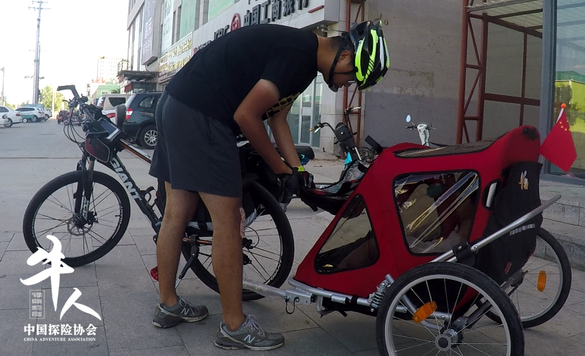 一辆单车,后面接上一辆简易的小拖车,父女两骑行无人区,前往乌兰巴托的征程就此开始。