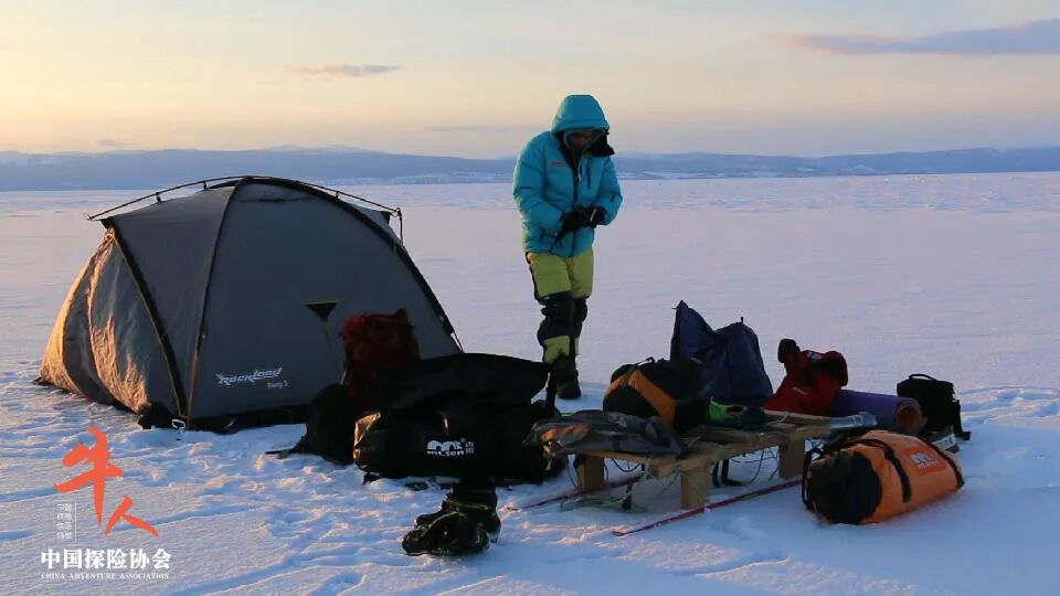 徐江军印象最深刻的是,有一天晚上,他在冰面上扎好营,但是当晚的风很大,把帐篷吹得剧烈摇摆,好像下一秒钟就要飞走一样。听着外面呼呼作响的狂风,徐江军一直担心帐篷会不会被掀翻,行李装备会不会被吹跑,行程还能不能顺利进行?