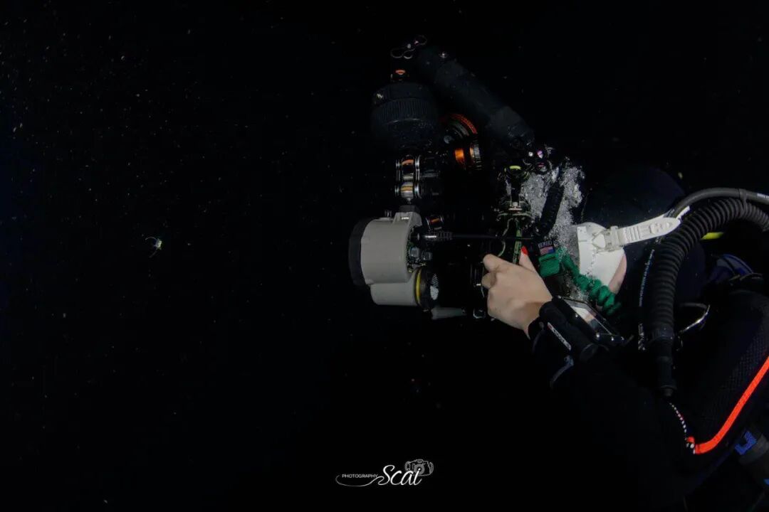 “晚上一定是没有白天安全的,我们下水的时候会从船上拴一根绳子,绳子每隔五米会有一个视频灯,作用是把一些浮游生物都吸引到水面。“