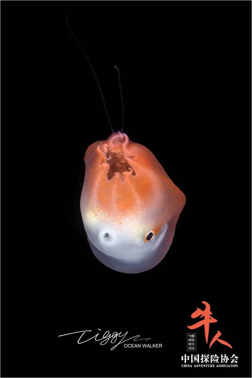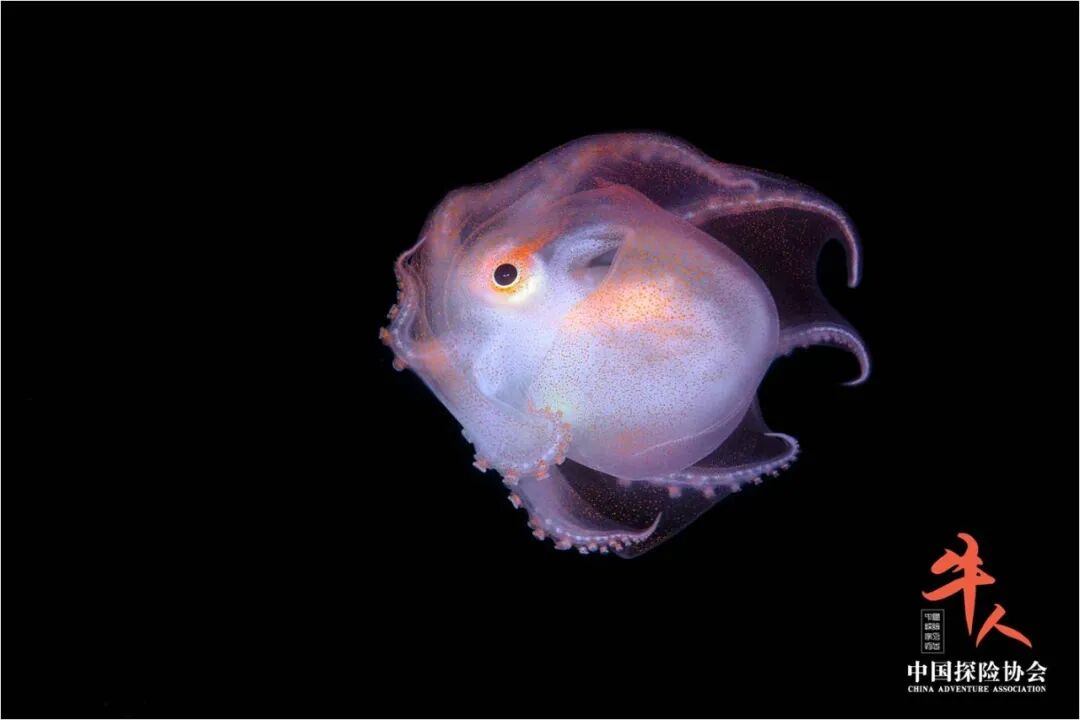 2019年来自北京的姑娘王天虹,在菲律宾阿尼洛的水下15米处,拍摄到罕见的深海章鱼,这是世界上第一次有人拍摄到七腕章鱼的幼体。