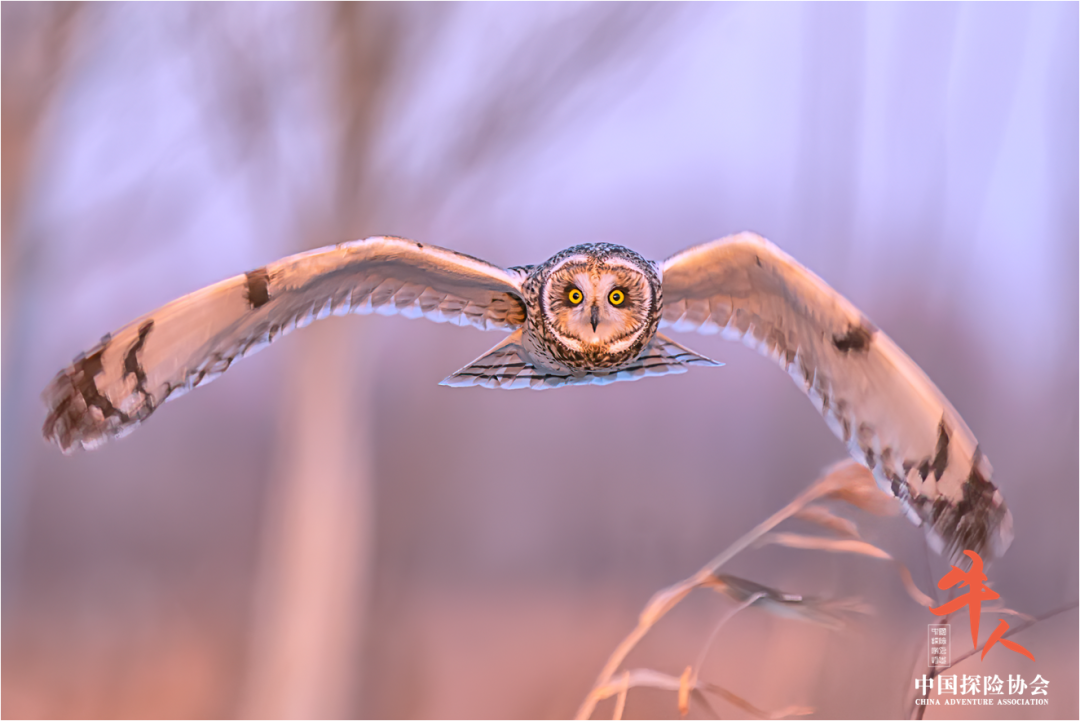 展翅飞翔的猫头鹰,哎,怎么看着傻乎乎的......