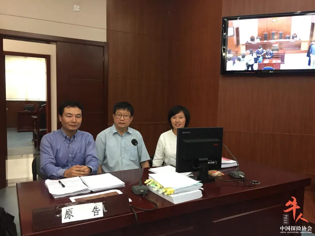 张伯驹和自然之友公益法律团队在绿孔雀案庭审现场的原告席上