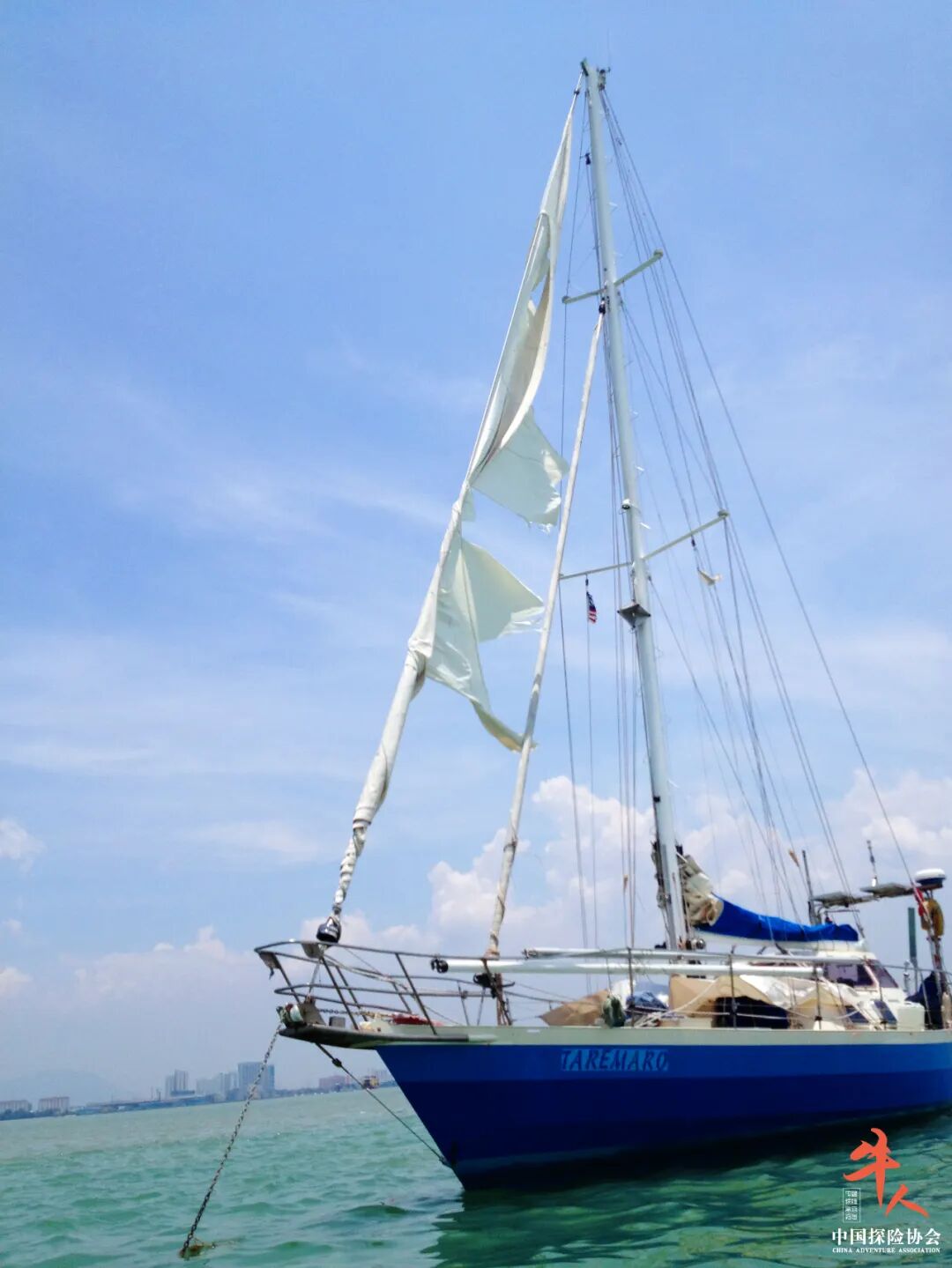 翟峰将船停靠在马来西亚的登嘉楼,那边华人社区有一个人,帮他们在当地的帆船俱乐部找到了一张便宜的旧帆,最终只花了不到2000元,这才算化解危机。