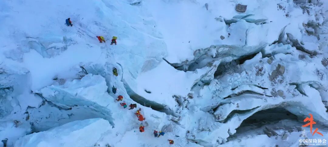 第一道难关便是昆布冰川,它是一个移动性的冰川,全是裂缝,人在其中穿行就像蚂蚁一样。要登顶珠峰,至少要在这条必经之路来回4趟。