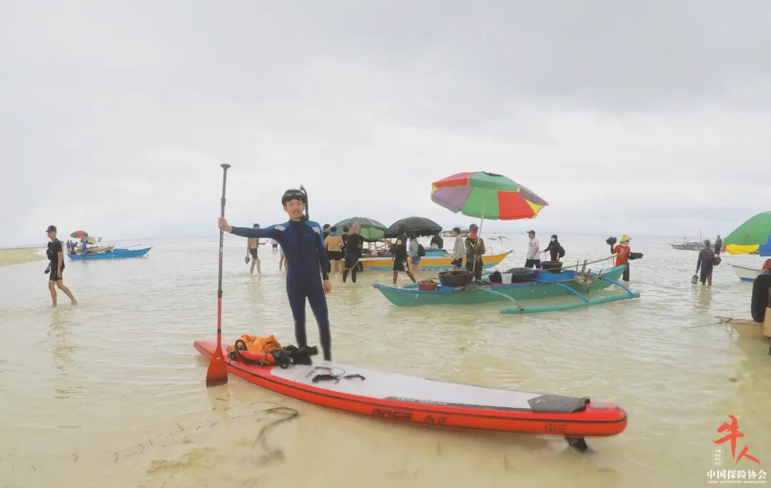 去菲律宾薄荷岛的时候,他选择了风和日丽的一天进行跳岛。原本目测不远处的岛屿离岸也就5公里,但实际往返划了将近14公里。