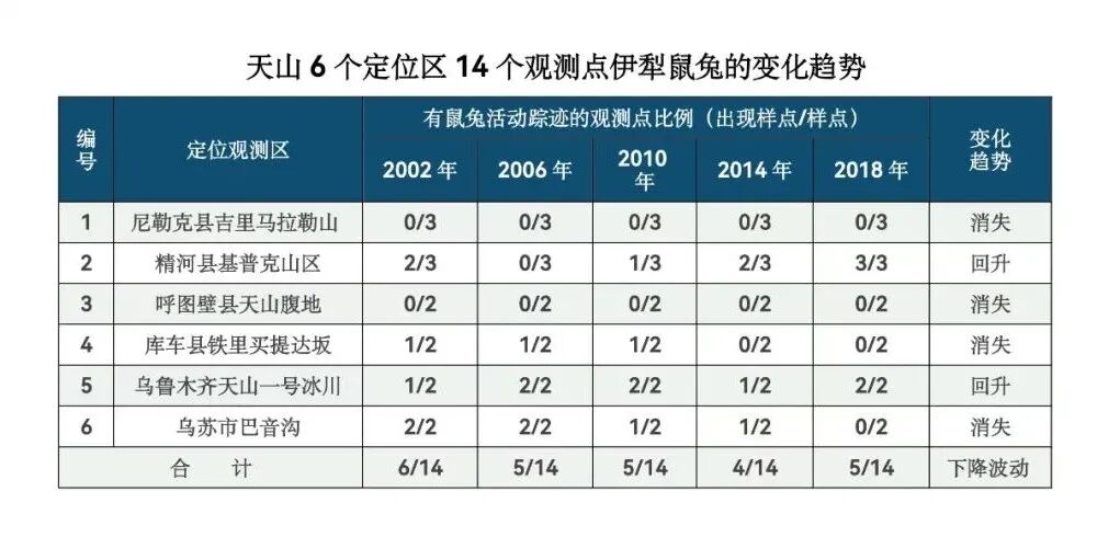 最早发现伊犁鼠兔的尼勒克模式标本产地,在2006年已看不到伊犁鼠兔,连它的粪便都已经风化;到2018年,南天山区域连续3年红外相机的监测也找不到任何伊犁鼠兔的踪迹,只得宣告该区域内伊犁鼠兔消失。
