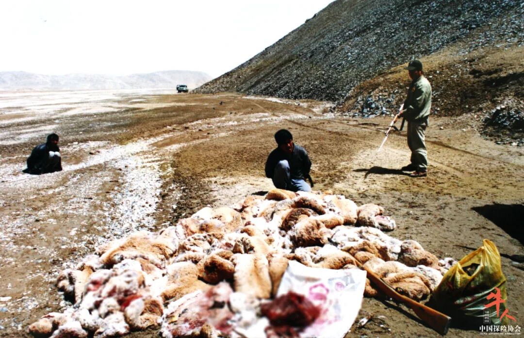 木孜塔格峰下乌鲁克苏河,整个河沟,上千只藏羚羊被猎杀、剥皮。剥了皮的藏羚羊被晒成了乌黑的紫色,老鹰、乌鸦啄食着血淋淋的尸骸。