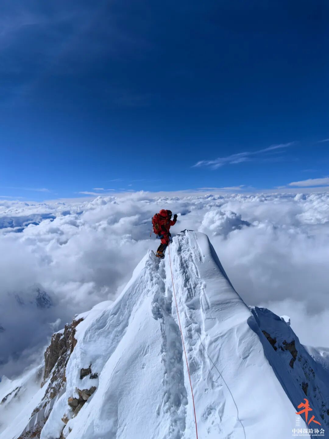 9月22日14:30,他收到雪山女神的“贺礼”——站在8163米海拔的马纳斯鲁真顶,成为今年全球首批登顶队员。
