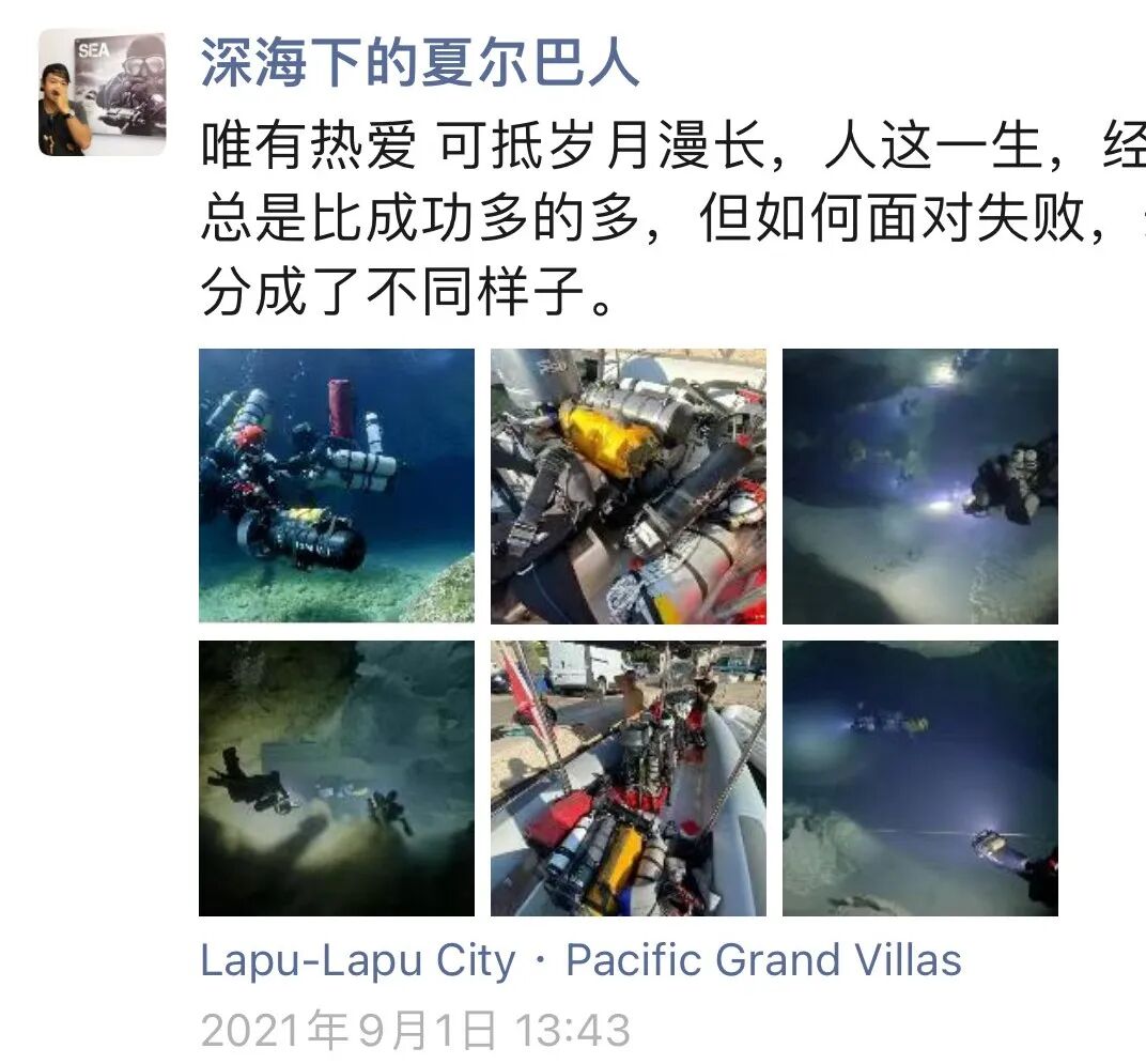 3月15日早上,维修地板直到中午才搞完。他赶到潜水店准备已经到下午了,需不需要下水呢?他毫不犹豫,因为今天是结婚五周年的日子。他下水前交代了Dive assure的保险,交代了儿子刘苹果的事,交代了潜水计划,他要去315feet(95米)的地方拍一段视频来纪念结婚5周年。
