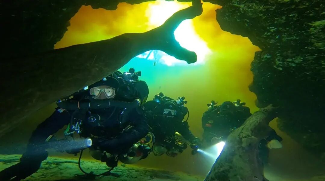 从1969年开始有纪录,经验丰富的洞穴潜水员在洞穴中,使用空气进行深潜。1970年开始 洞穴潜水员使用双瓶快速下潜的标准方式开始了洞穴深度探索,他们要面临巨大的迷醉,氧气中毒和气体耗竭风险。