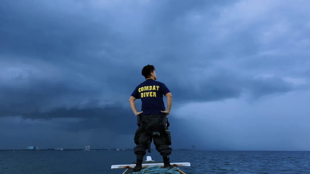 雅各布最后一次检查装备,把咬嘴含进嘴里做了一次深呼吸,像他千百次重复的动作那样,坐在船帮上往后仰,跃入他最熟悉的海洋,逐渐隐入那一片深蓝。