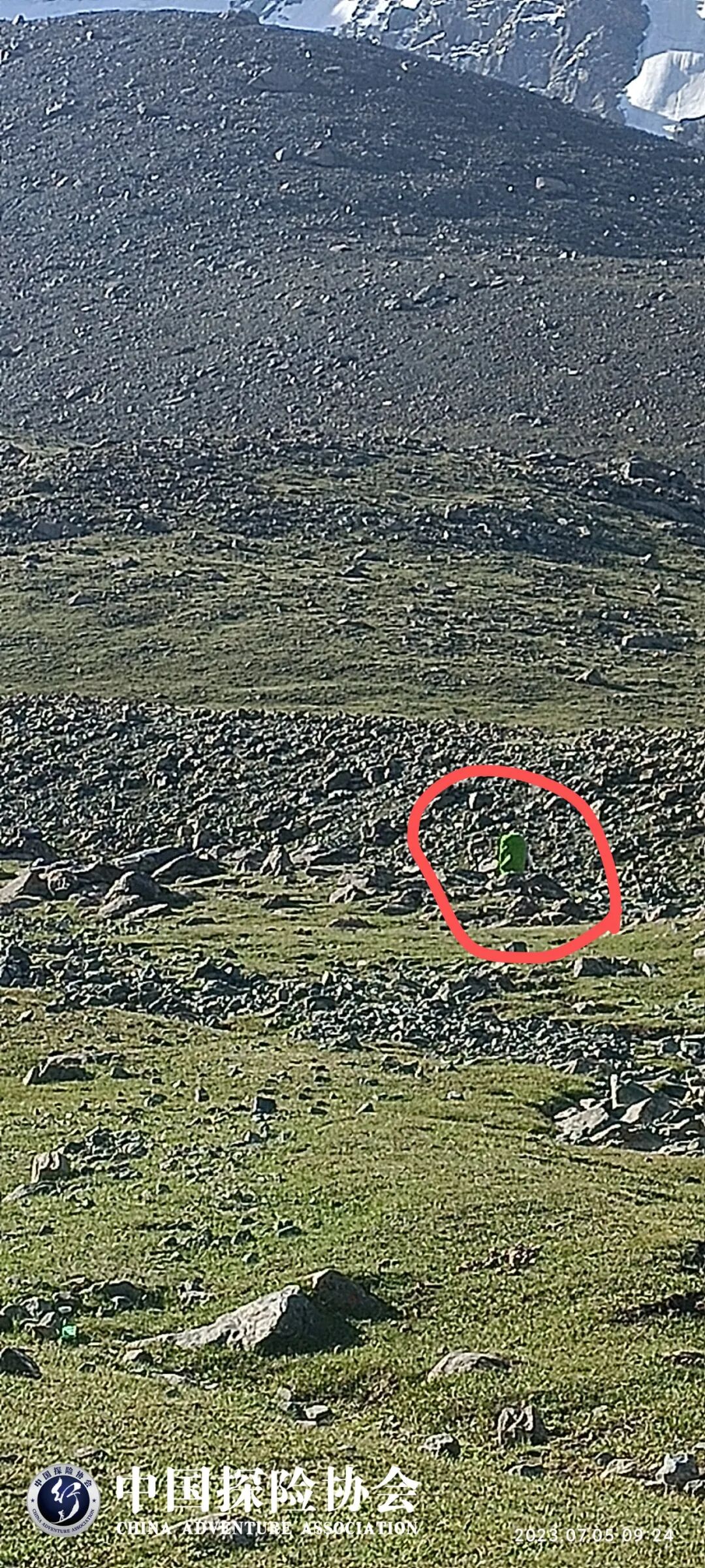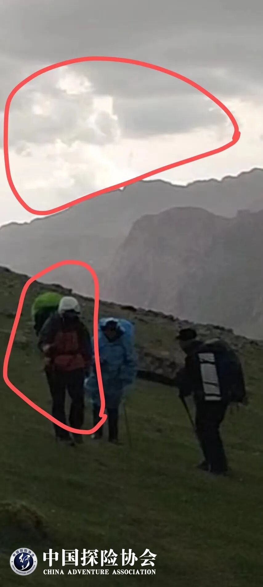 影像为遇到他的队伍所拍摄,此图为截屏。由视频可见,当时已经变天,开始下雨。)