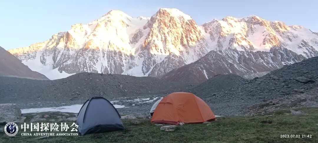 下午6点多,两人走到白杨河西沟冰川营地,并在这里驻扎一晚。