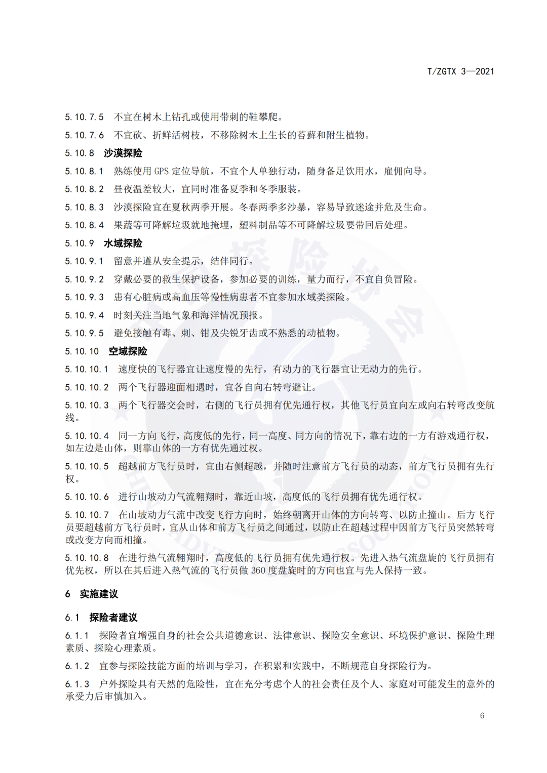 探险活动,首先应依法合规,凡涉及政府许可的,应事先向政府部门申请。其次,应准备周详的探险方案和应急救援预案。再次,应准备与活动、场域、气候适配的户外探险装备和充裕的食物补给。