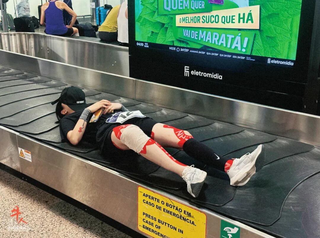 而当时的那个机场路很长,走到海关需要20多分钟,这对饱受膝伤之苦的杜怡霖来说异常艰难。