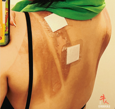 在迪拜,她后背晒伤的地方开始一层层地脱皮;在马德里,她的后背满满都是往下坠的大水泡,“从后面看特别像蛤蟆。后来那水泡又开始破,又开始满后背的全是脓。之后,那个书包还在那磨,磨着磨着那水泡全破了,就全是脓,反正就是很恶心。”