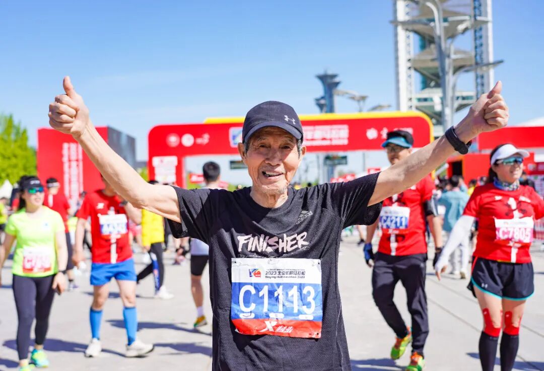 87岁的张顺大爷在2023年北京马拉松 图源:新华社