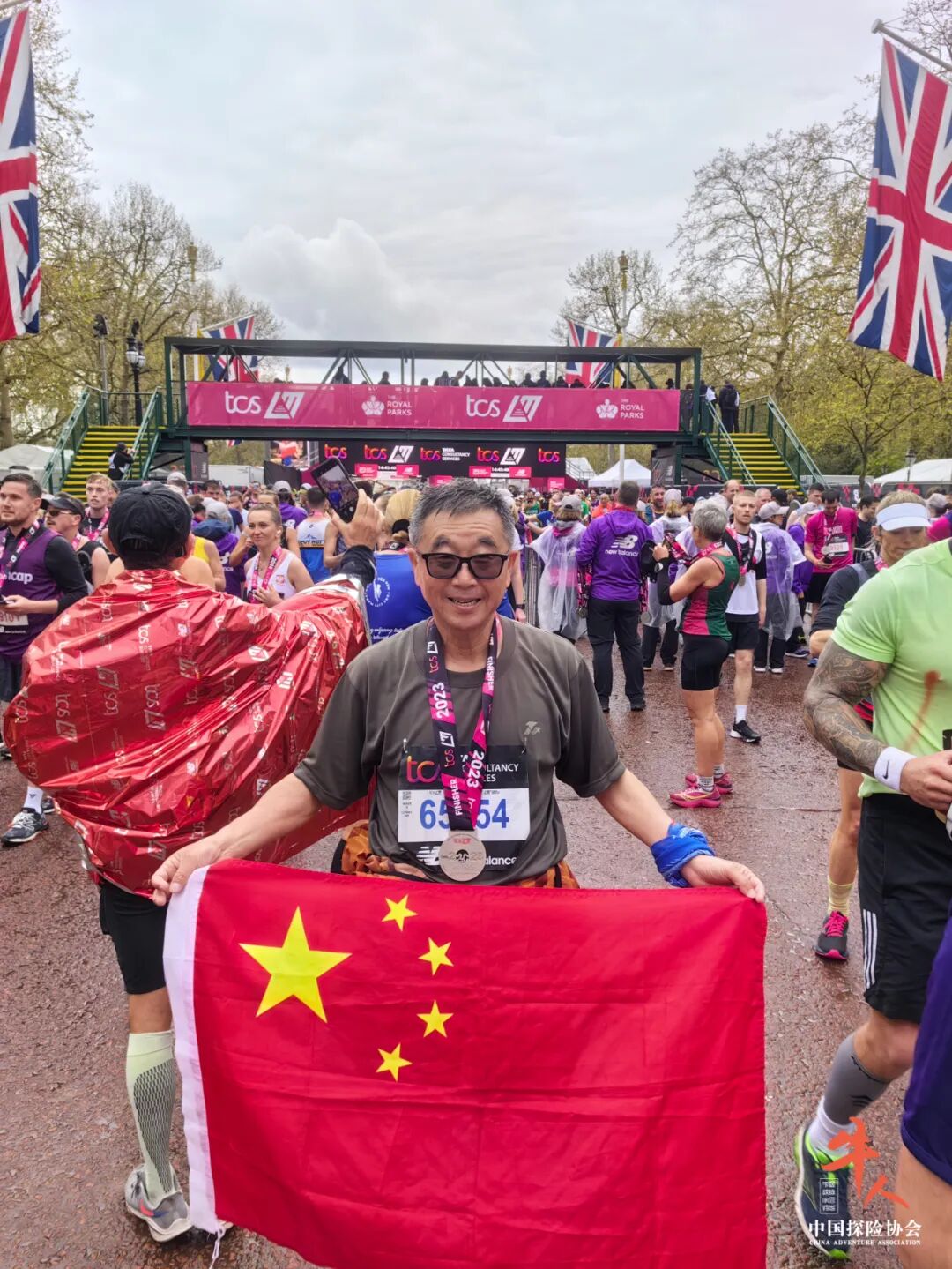 2023年伦敦马拉松“小白哥”在终点 供图:李小白
