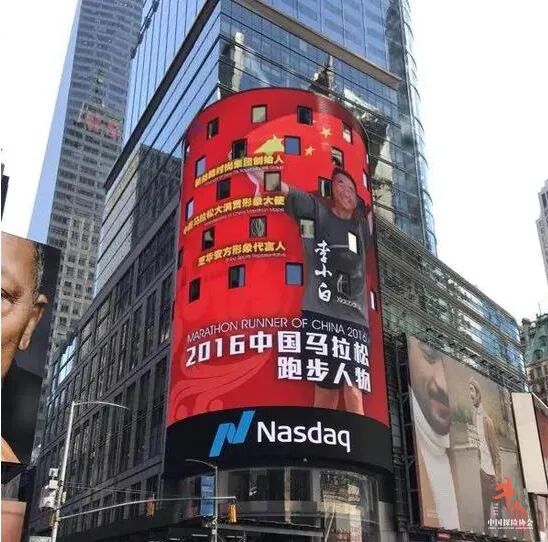 那是2018年,中国国庆节的当天,奔跑的李小白与五星红旗登陆纽约时代广场纳斯达克大屏。这是中国“马拉松跑步人物”第一次站在“世界的十字街头”。