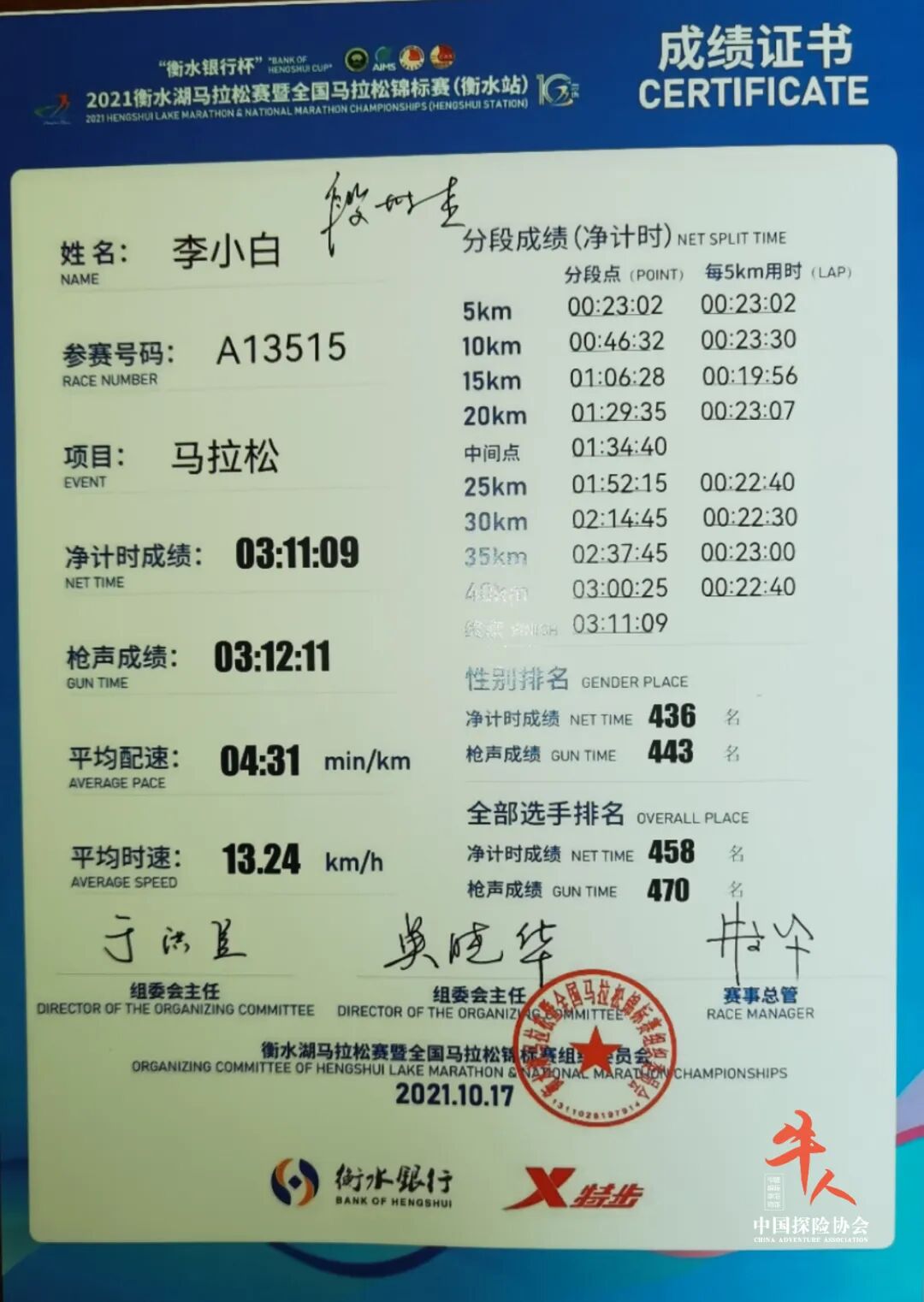 2021年“小白哥”衡水马拉松的成绩单 供图:李小白