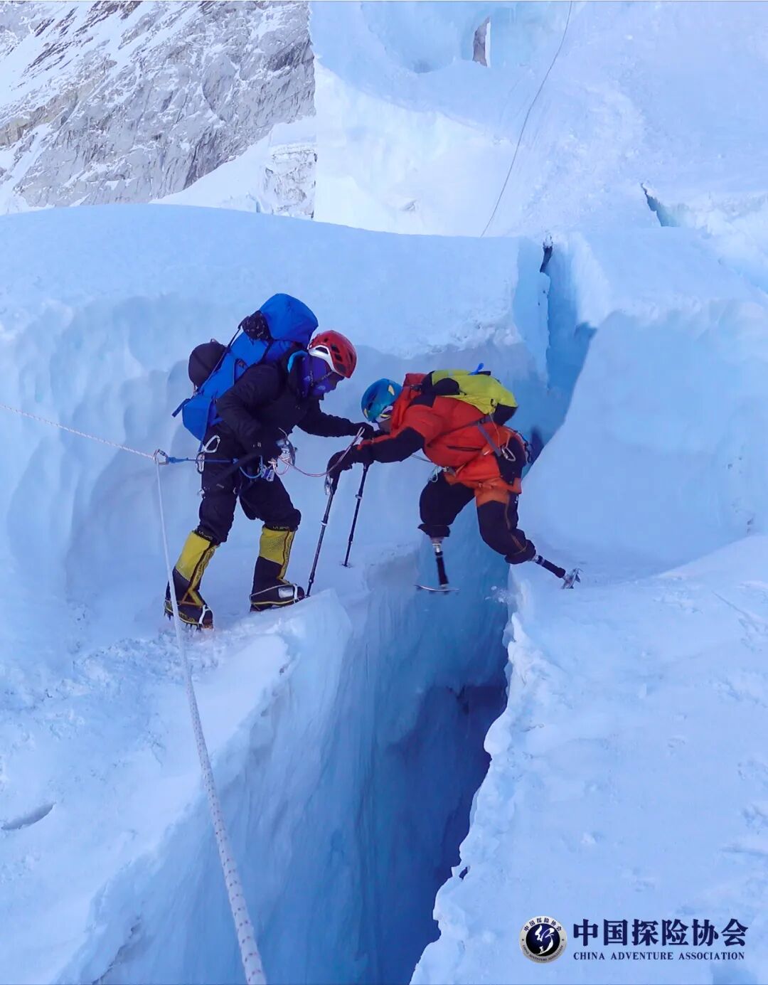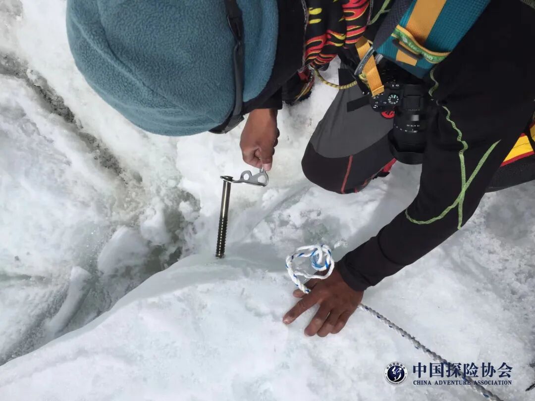 范江涛一行人从大本营前往C1营地的过程中,有队员失足,掉到冰裂缝中,而身边没有夏尔巴向导。