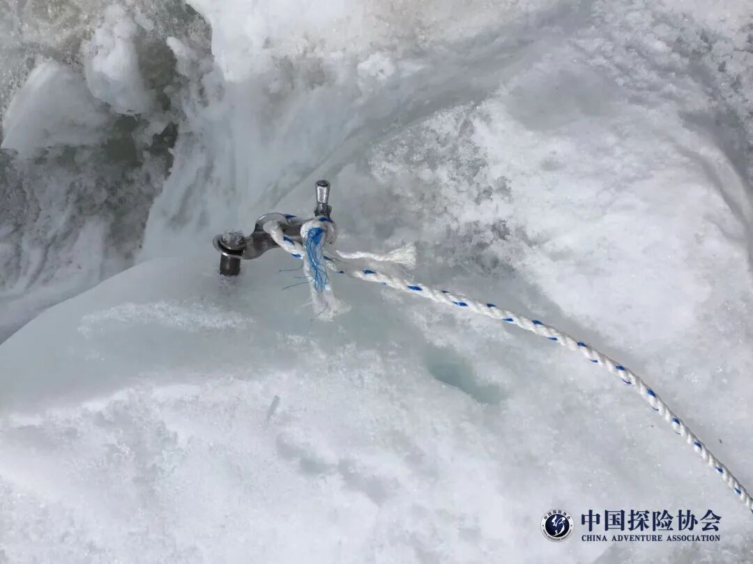原来,由于太阳直射,原本固定的冰锥已松动,如果不重新固定,一旦冰锥上面贯穿的绳索受力,冰锥松动,后果不堪设想。